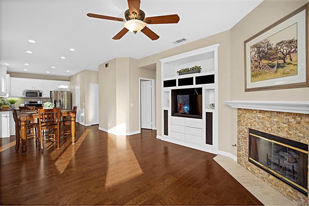 Welcome to 15 Tanglewood, a rare opportunity in the highly desirable Las Flores neighborhood of Rancho Santa Margarita, where homes seldom come on the market. This inviting residence offers 1,703 square feet of thoughtfully designed living space with 4 bedrooms and 2.5 bathrooms, combining comfort, functionality, and a true sense of community. Soaring ceilings greet you upon entry, creating a bright and open first impression. Beautiful warm wood flooring flows throughout the downstairs and continues up the staircase, adding character and a cohesive, timeless look. The kitchen opens seamlessly to the family room, where a cozy fireplace provides a welcoming focal point for both daily living and entertaining. A sliding door from the kitchen leads directly to the fenced backyard, making indoor-outdoor living effortless and ideal for al fresco dining. The private backyard is finished with low-maintenance, water-saving turf, offering a versatile space for relaxing, play, or entertaining guests. A charming front porch enhances the home’s curb appeal and provides a comfortable place to enjoy morning coffee or unwind in the evening. The two-car garage adds convenience and additional storage. Residents enjoy access to a nearby neighborhood park featuring a playground, BBQ, and picnic areas. The community offers exceptional value with HOA dues among the lowest in the surrounding areas, along with a low tax rate and no Mello-Roos, while still providing resort-style amenities including scenic walking and hiking trails, a sparkling pool and spa, splash pad, multiple playgrounds, tennis, pickleball, and basketball courts, and a baseball field. Conveniently located near award-winning schools, Tijeras Creek Golf Club, shopping, dining, freeways, and toll roads, this home delivers both lifestyle and location. Don’t miss this exceptional opportunity to own in one of South Orange County’s most desirable and tightly held neighborhoods.