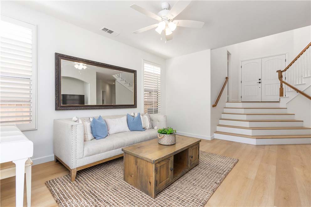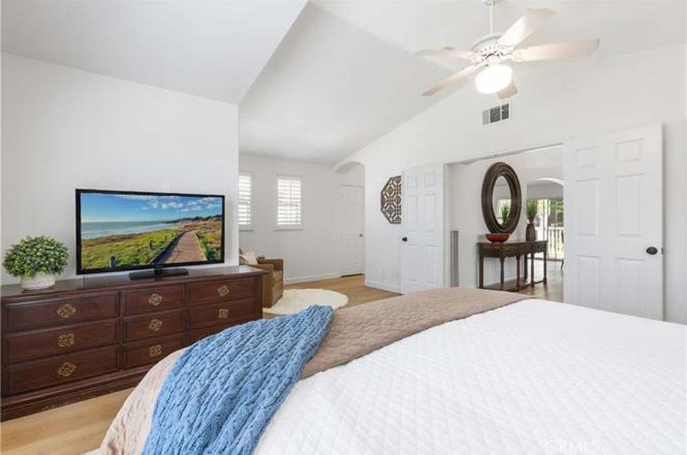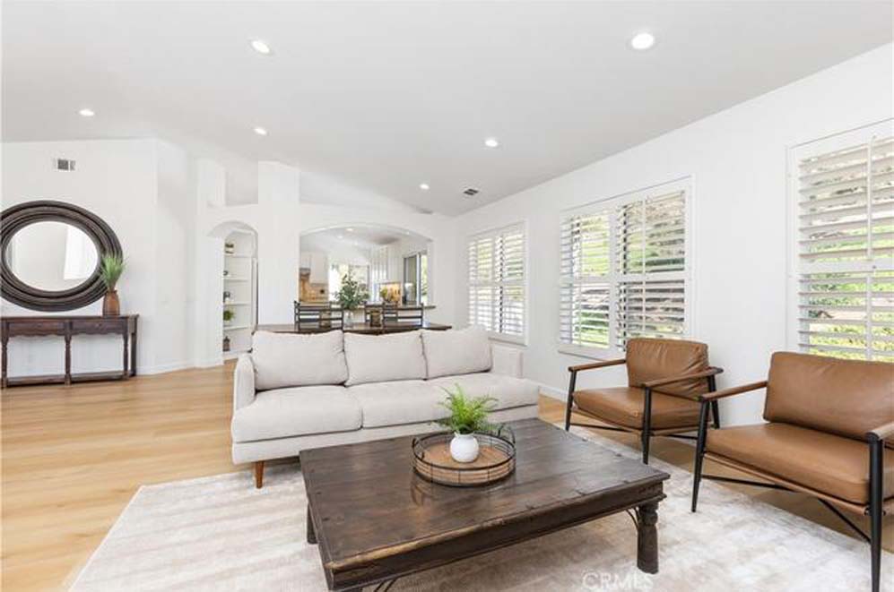 Welcome to 16 Woodsong in the highly sought-after Las Flores community of Rancho Santa Margarita. This updated 4-bedroom, 2.5-bath home offers a versatile layout, modern upgrades, and an exceptional location. Featuring brand-new luxury vinyl plank flooring throughout and fresh interior paint, the home feels bright, clean, and truly move-in ready. The main-floor primary suite provides comfort and convenience, while the lower level includes three secondary bedrooms, a fully remodeled bathroom with stylish finishes, a dedicated laundry room, and direct access to a spacious 3-car garage. The kitchen opens through sliding glass doors to a brand-new patio deck — perfect for indoor-outdoor entertaining. The backyard also features a charming fountain, creating a peaceful and inviting outdoor setting. There’s ample space in the kitchen to add a center island and further customize the heart of the home. Located in the desirable Las Flores neighborhood, residents enjoy access to parks, scenic trails, and Oak Tree Park with its large lap-size community pool. Known for its top-rated schools and strong sense of community, Las Flores is just minutes from shopping, dining, and everyday conveniences, with easy access to toll roads for commuting. Space, upgrades, community, and location — this one checks all the boxes.